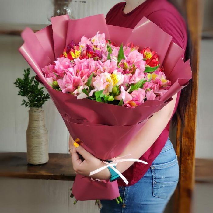 Яркий букет разноцветной альстромерии прекрасный подарок на День Рождение или годовщину свадьбы. Порадуй свою любимую красивым букетом свежих цветов.