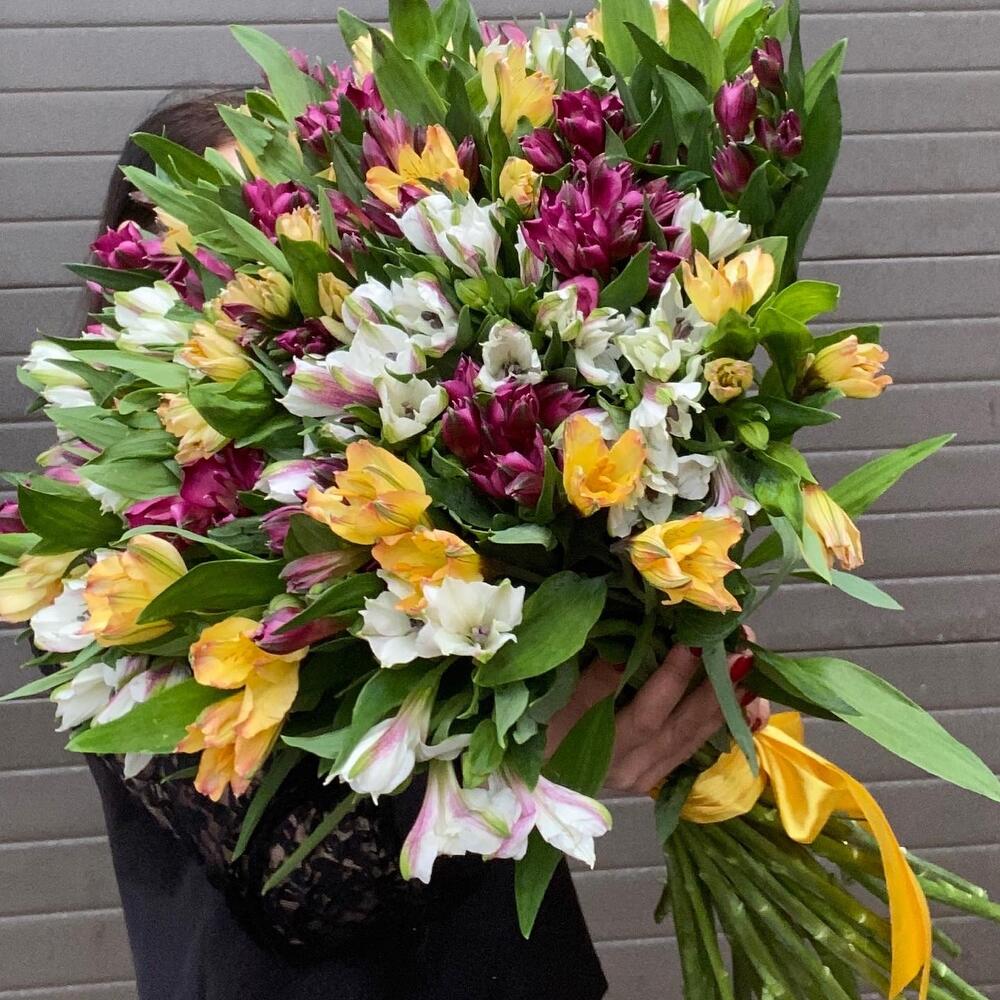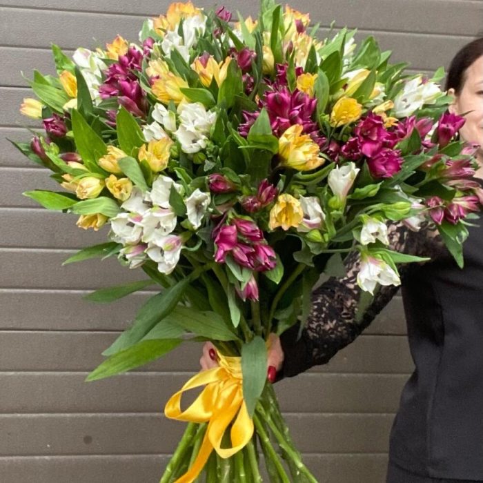 Лента атласная – 1 шт.Альстромерия Микс Европа – 30 шт.
