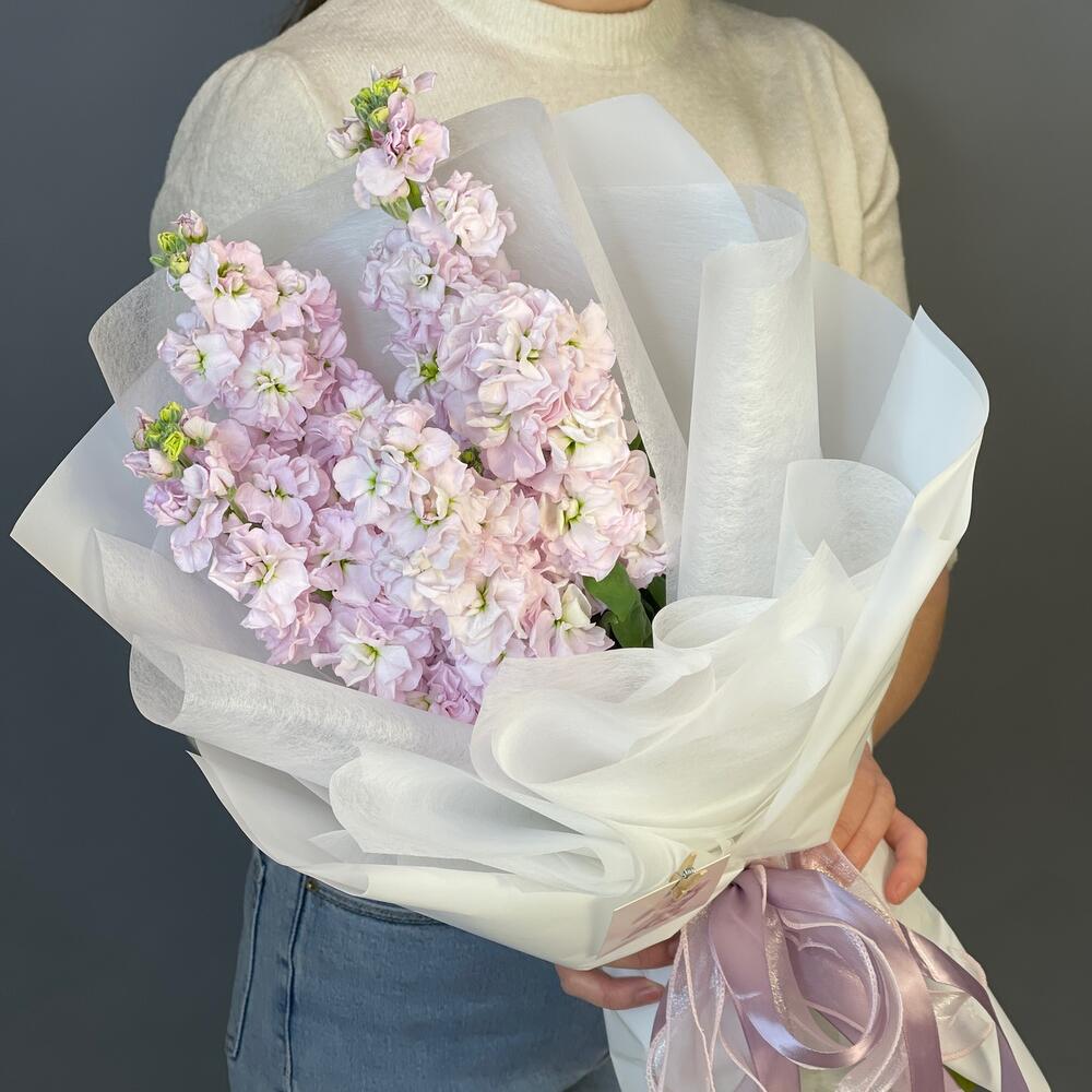 Лента – 2 шт.Маттиола – 5 шт.Упаковка дизайнерская – 2 шт.Открыточка с вашими пожеланиями – 1 шт.