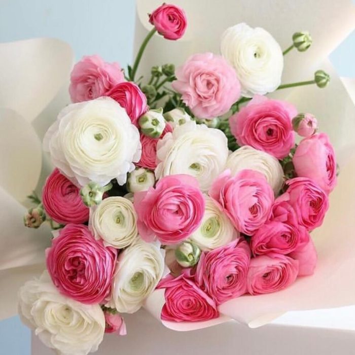 ранункулюсы микс – 25 шт.Упаковка дизайнерская – 1 шт.Лента атласная – 2 шт.Открытка – 1 шт.инструкция по уходу за цветами – 1 шт.хорошее настроение – 100 шт.коробка переноска – 1 шт.Кризал – 1 шт.