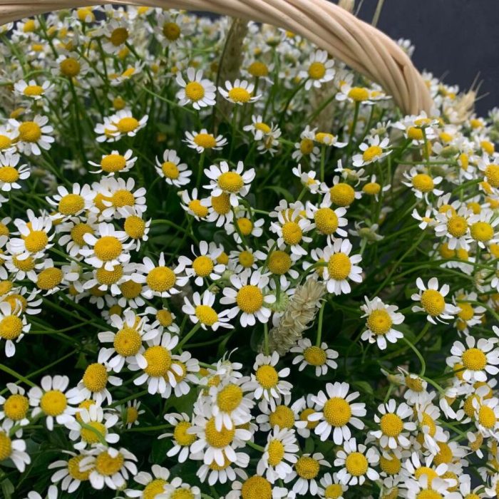 Матрикария – 25 шт.триникум колосья – 30 шт.Оазис флористический – 1 шт.Корзина плетеная – 1 шт.