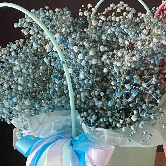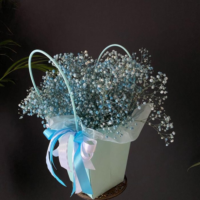 Гипсофила – 7 шт. Лента атласная – 1 шт. Тишью – 1 шт. Крафт пакет – 1 шт. Оазис флористический – 1 шт. Слюда упаковка – 3 шт.