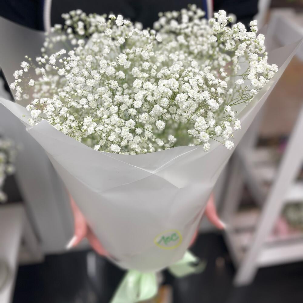 Гипсофила – 7 шт.Лента атласная – 1 шт.Пленка матовая – 4 шт.