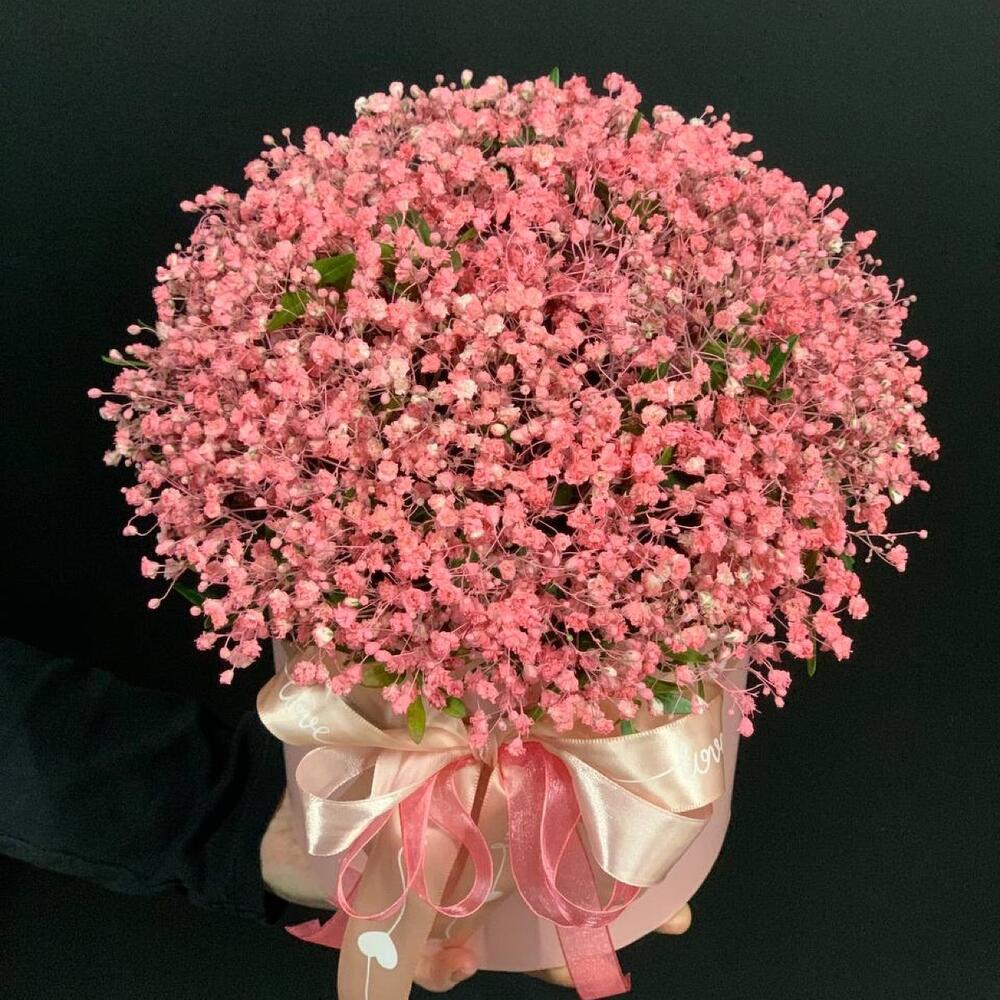 Гипсофила – 5 шт.Оазис флористический – 1 шт.Шляпная коробка – 1 шт.Атласная лента – 2 шт.Фисташка – 3 шт.
