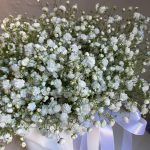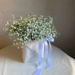 “Сиреневый туман” – композиция из гипсофилы в шляпной коробке