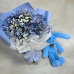 Подарочный набор – Букетик гипсофилы (размеры: 25 см высота, 20 см ширина) с мягкой игрушкой Lapkin. Доставляется в крафтовом пакете (высота 25 см, ширина 22 см, глубина 12 см).