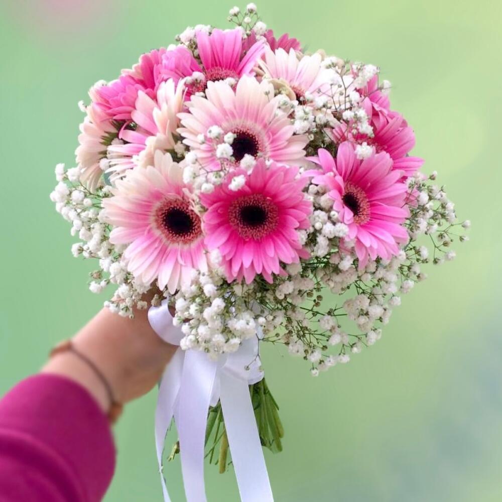Изысканный букет невесты из Гербер мини и Гипсофилы обязательно скрасит ваш самый знаменательный день в замёрз!Цвета в ассортименте.(Возможно заменить)!Наличие определённого цвета уточняйте перед заказом!В любой букет, дополнительно, можно добавить зелень. Большой ассортимент!(Пожелание пишите нам в чат)❗️Обратите внимание❗️ В подарок к букету идёт лента!Другая подарочная упаковка, открытки, топперы, вазы и другие праздничные аксессуары доступны в доп.товарах!✅ Наш интернет-магазин на рынке уже более 8 лет!✅ Свежие цветы 3 раза в неделю!✅ Быстрая доставка в день заказа!