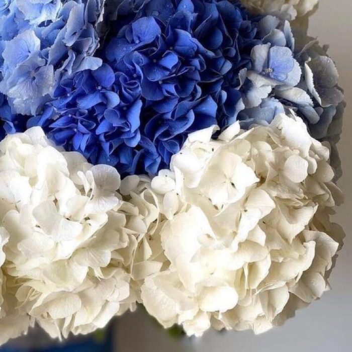 Гортензия белая – 4 шт.Гортензия голубая – 4 шт.Гортензия синяя – 5 шт.Лента атласная – 2 шт.Открыточка с вашими пожеланиями – 1 шт.хорошее настроение – 100 шт.инструкция по уходу за цветами – 1 шт.коробка переноска – 1 шт.Кризал – 1 шт.