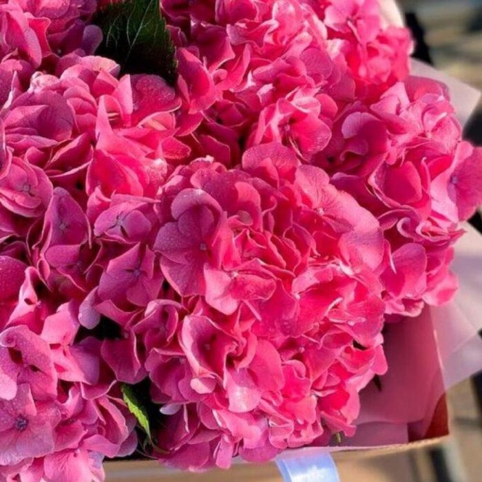 Гортензия розовая – 9 шт.Упаковка дизайнерская – 1 шт.Лента атласная – 2 шт.Открыточка с вашими пожеланиями – 1 шт.хорошее настроение – 100 шт.инструкция по уходу за цветами – 1 шт.коробка переноска – 1 шт.Кризал – 1 шт.
