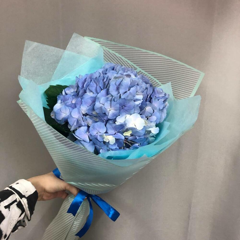 Гортензия голубая – 1 шт.Корейская пленка – 1 шт.Лента атласная – 1 шт.