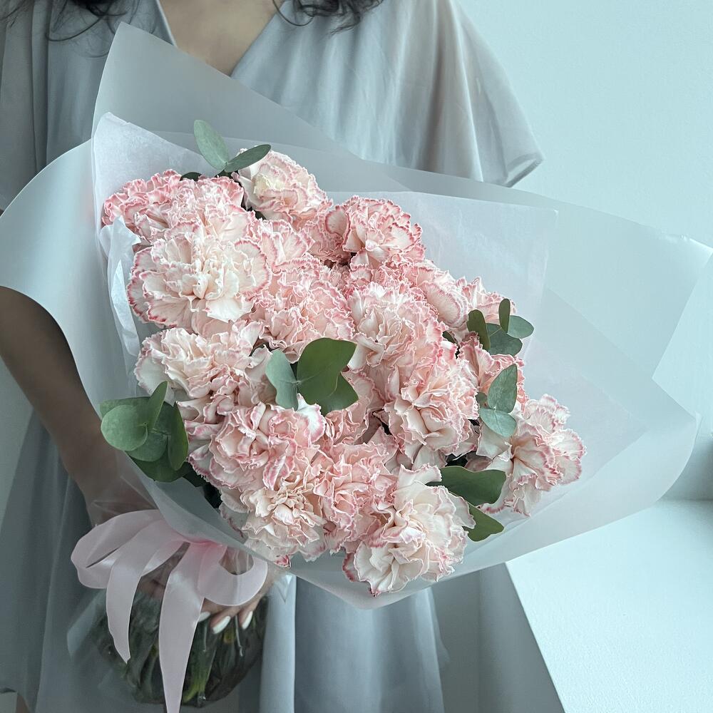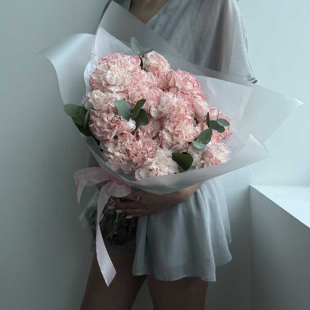 25 розовых гвоздик с эвкалиптом (букет N 27)