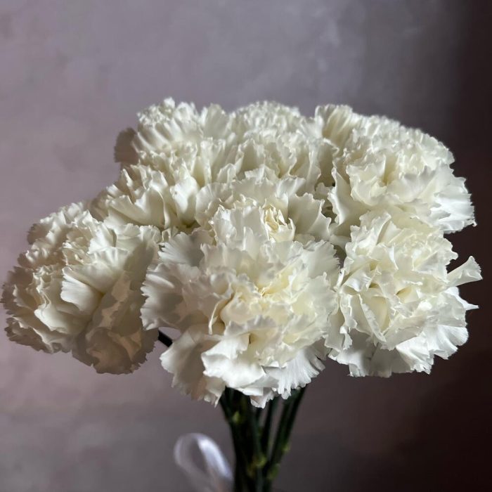 белые диантусы – 11 шт.Атласная лента – 1 шт.
