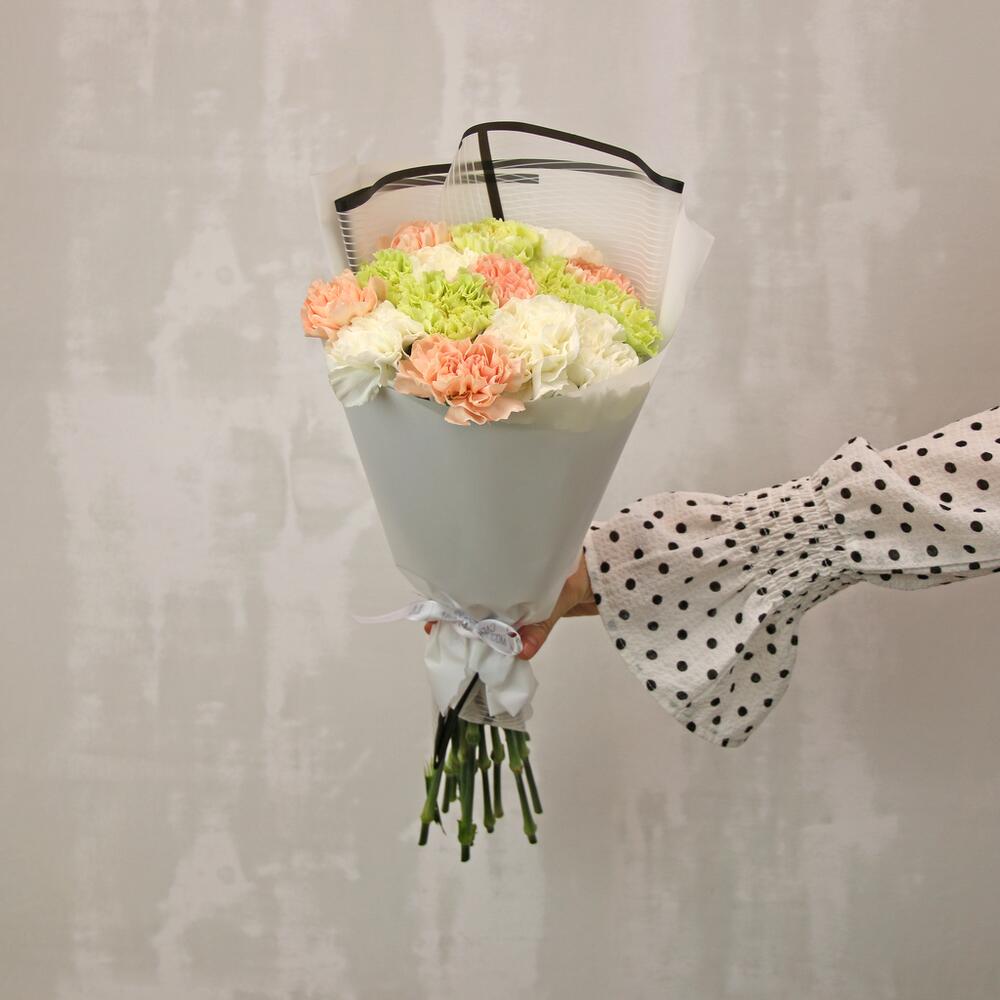 Букет из гвоздик и пионовидных кустовых роз