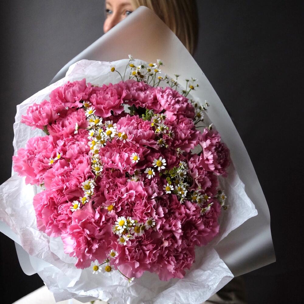 Букет из 25 диантусов и ромашки