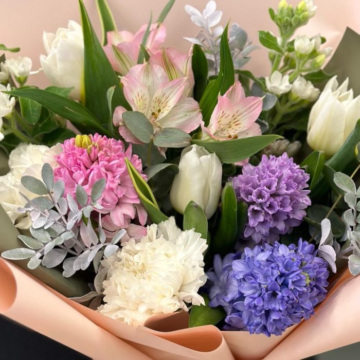 Букет с гиацинтами и тюльпанами