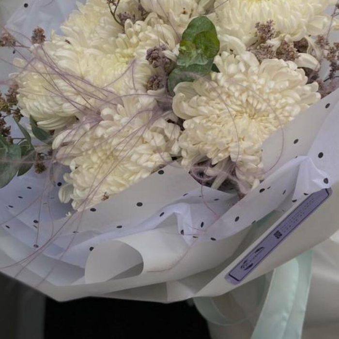 Лимониум – 1 шт.Эвкалипт – 1 шт.Хризантема – 7 шт.Упаковка дизайнерская – 2 шт.Ковыль – 1 шт.