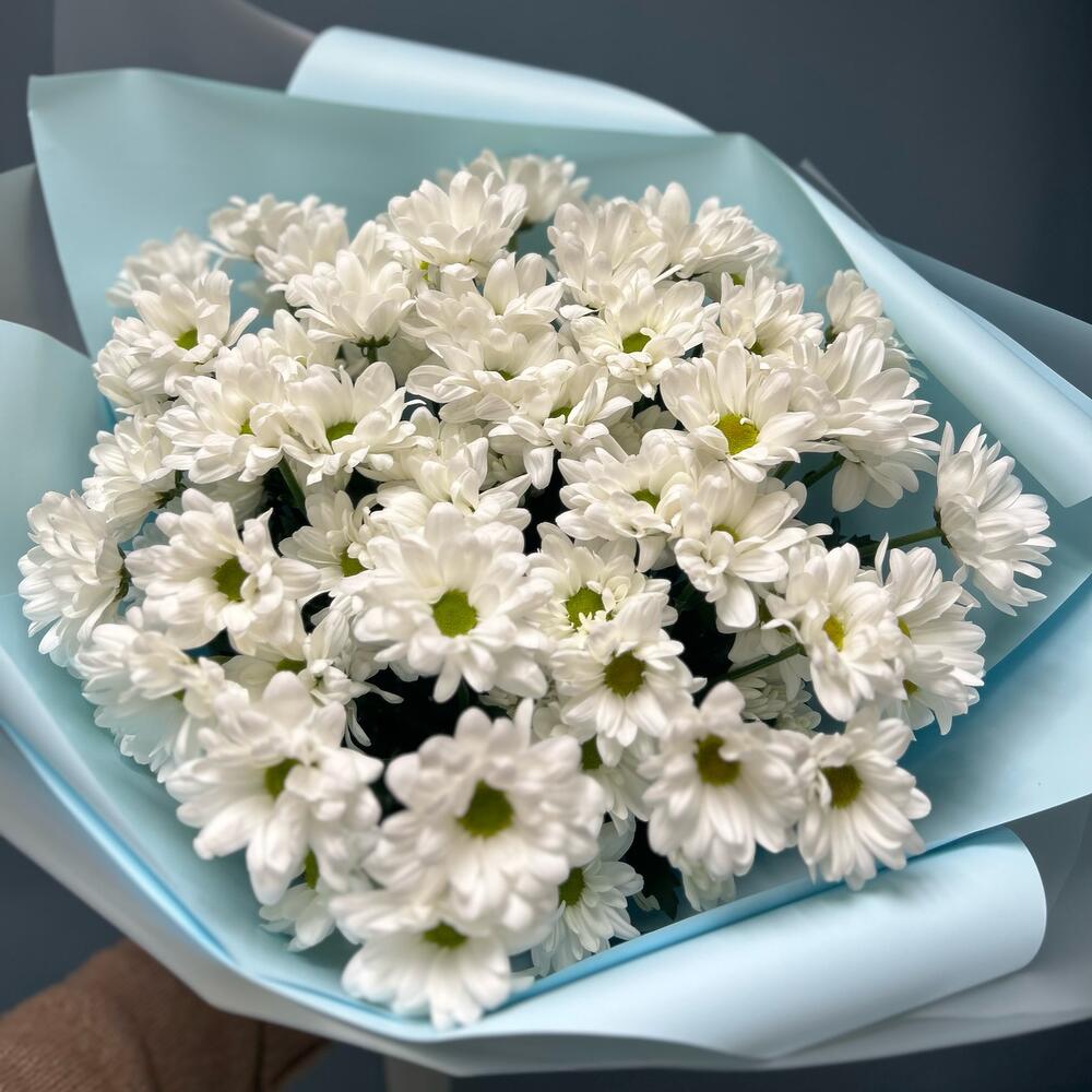 Букет из 51 кустовой хризантемы нежный микс в стильной упаковке