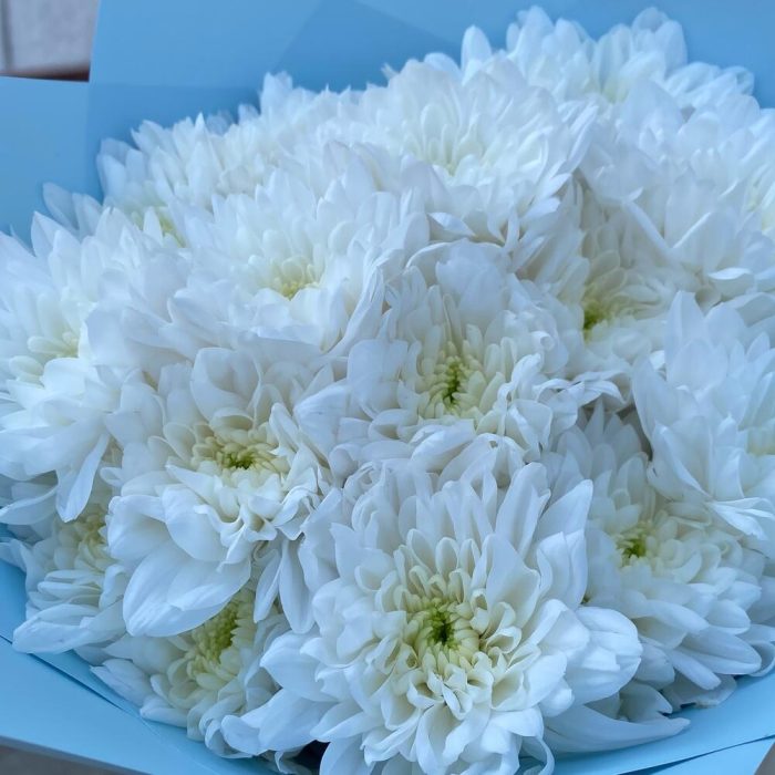 Хризантема кустовая – 5 шт.Лента атласная – 1 шт.Упаковка дизайнерская – 1 шт.