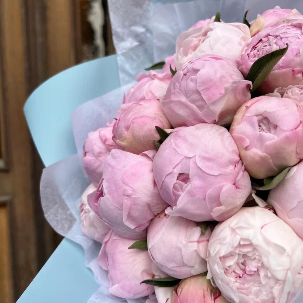 Лента атласная – 2 шт.Тишью – 1 шт.Пион Сара Бернар розовый – 25 шт.Дизайнерская упаковка – 5 шт.