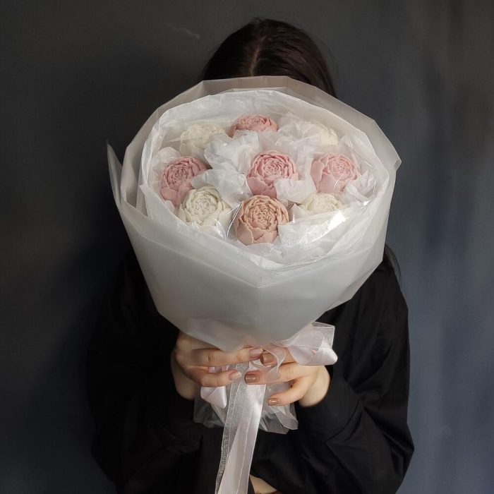 пион из белого бельгийского шоколада – 9 шт.уракрвка дизайнерская – 2 шт.