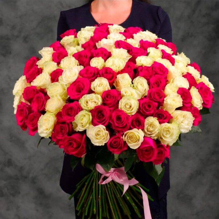 Огромный букет из 101 белой и розовой.