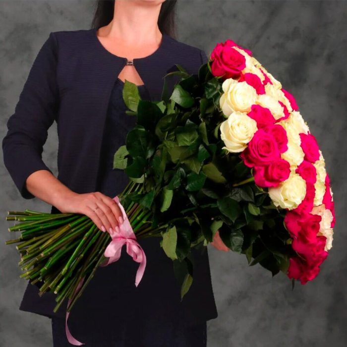 Метки: 101 роза, от 5000 руб, Роза 70 см