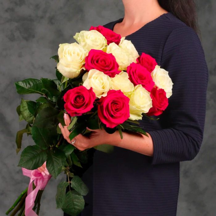 Букет 15 белых и розовых роз