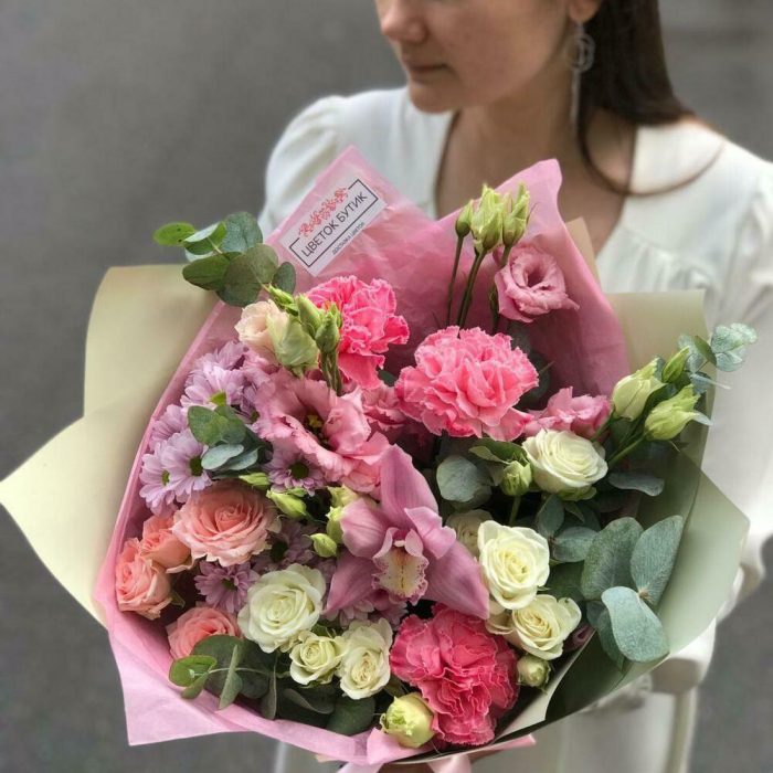 Категорий: Гвоздики, Кустовые розы, Лизиантусы, Орхидеи, Розы, Хризантемы