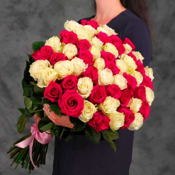 Букет 51 белая и розовая роза