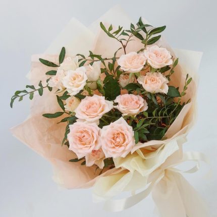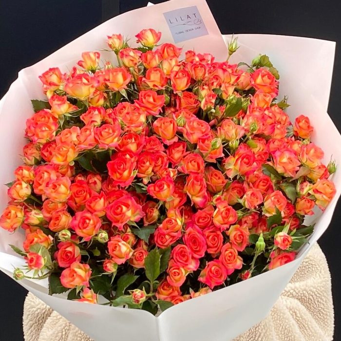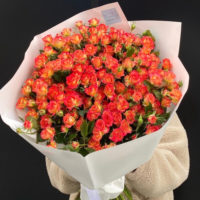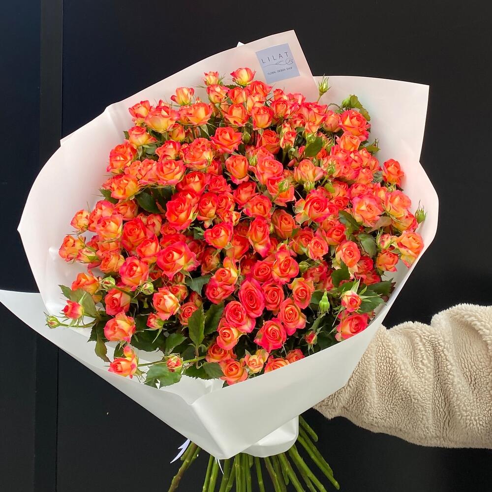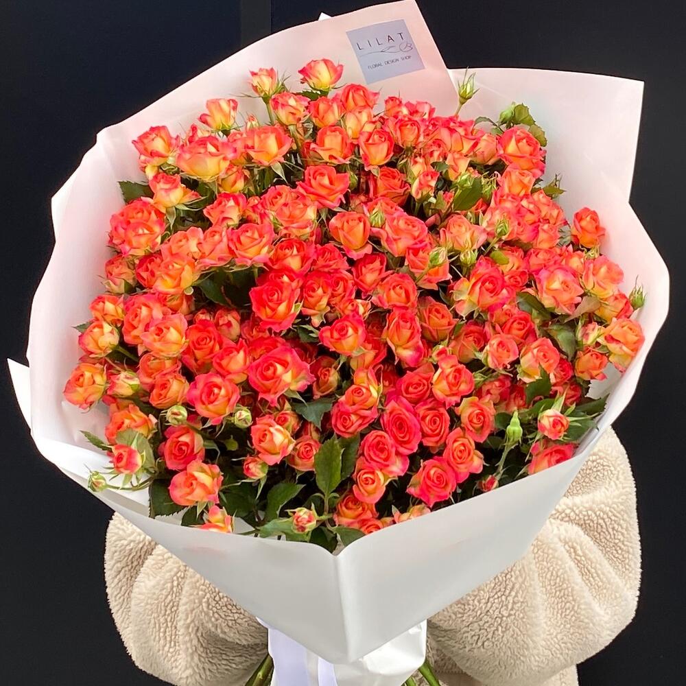 Кустовая роза – 40 шт. Упаковка дизайнерская – 1 шт. Открыточка с вашими пожеланиями – 1 шт.