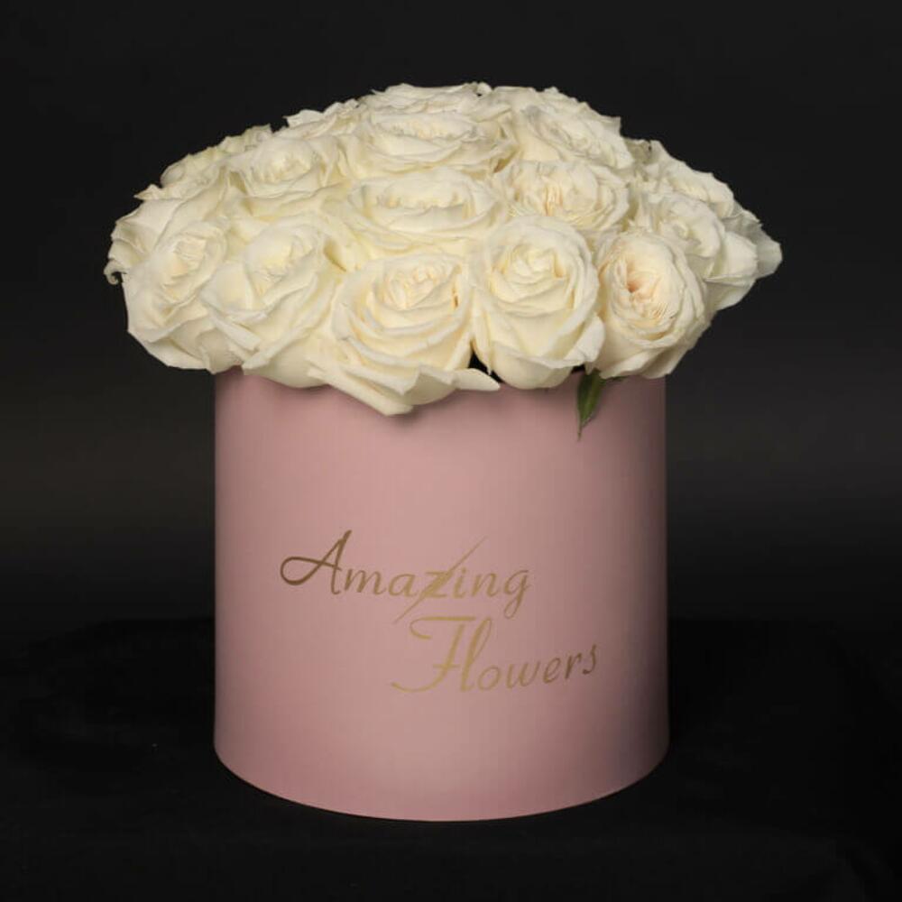 Букет из 25 белых эквадорских роз в коробке