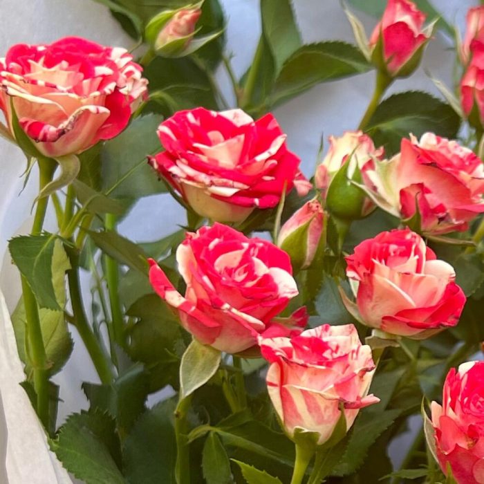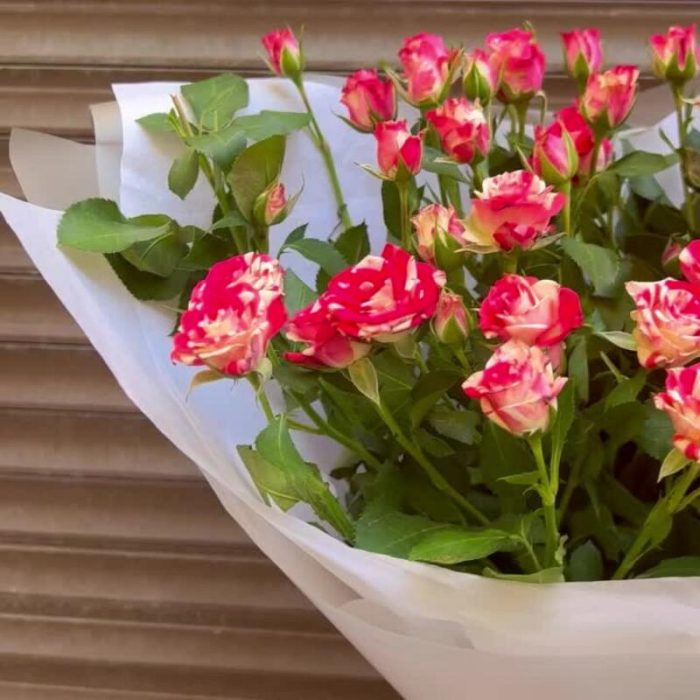 Тишью – 2 шт.Пленка матовая – 2 шт.роза фаервокс кустовая – 5 шт.