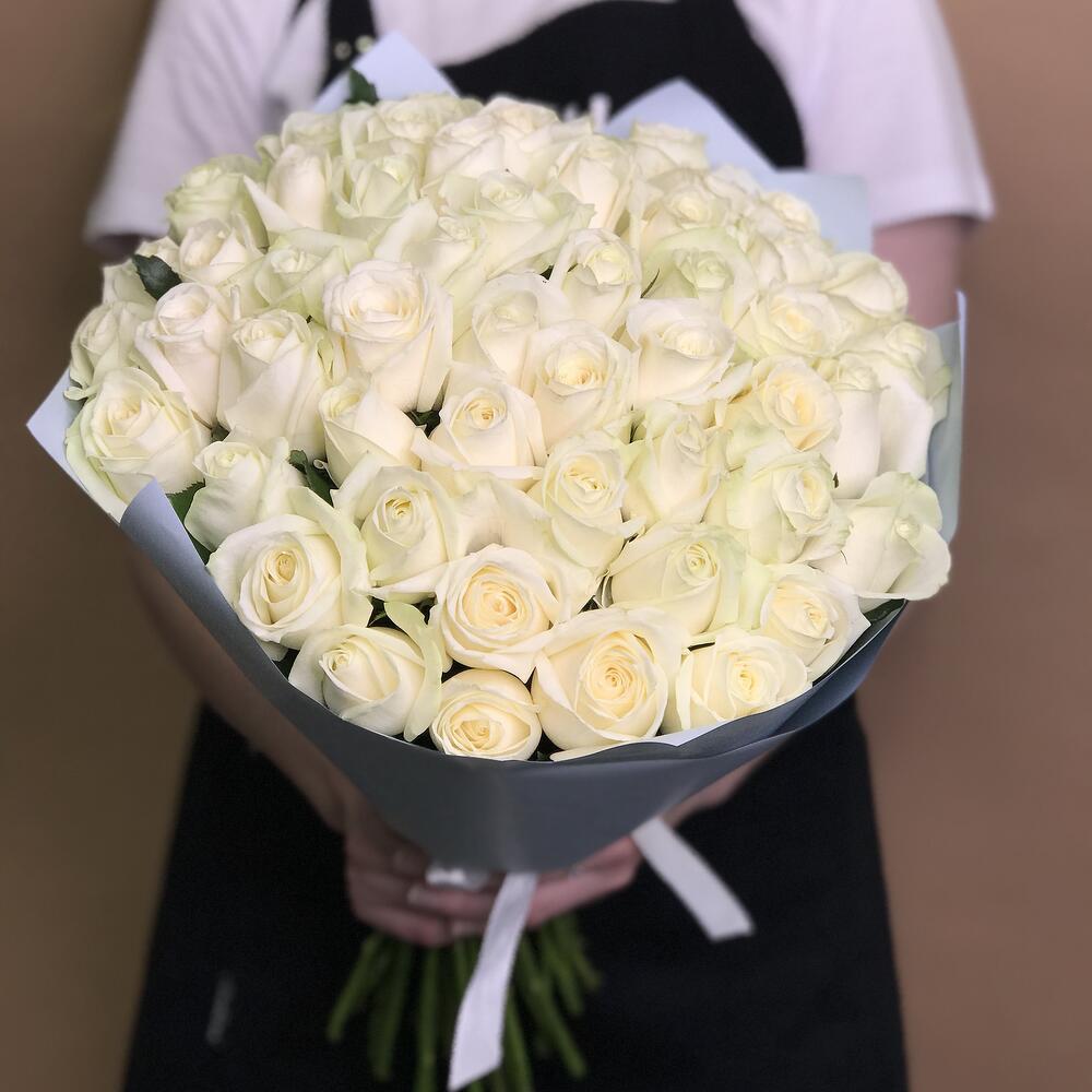 Упаковка – 1 шт.Атласная лента – 1 шт.Роза белая 50 см – 51 шт.