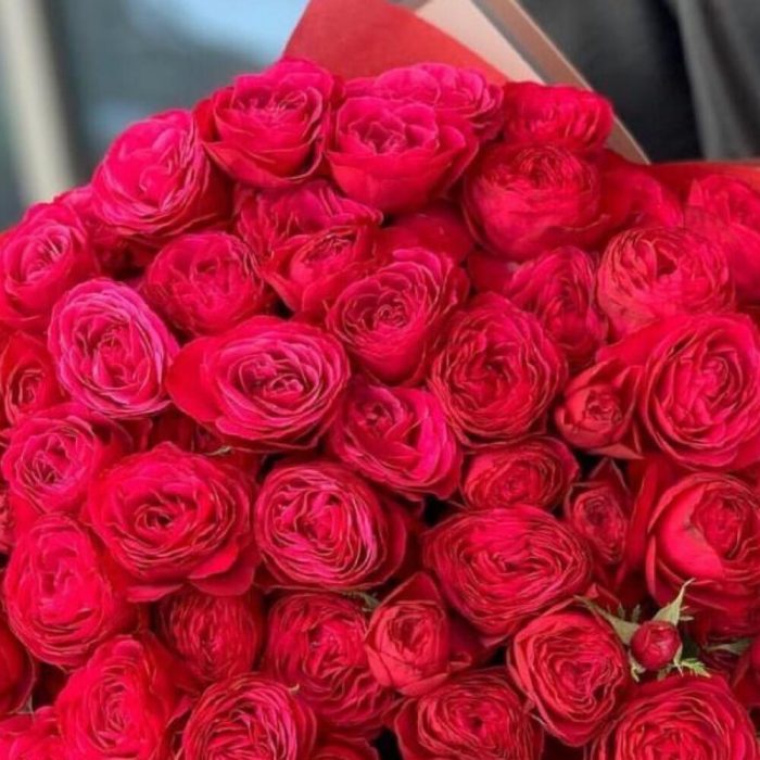 розыпионовидные красные – 51 шт.Упаковка дизайнерская – 1 шт.Лента атласная – 1 шт.Открыточка с вашими пожеланиями – 1 шт.хорошее настроение – 100 шт.инструкция по уходу за цветами – 1 шт.коробка переноска – 1 шт.Кризал – 1 шт.