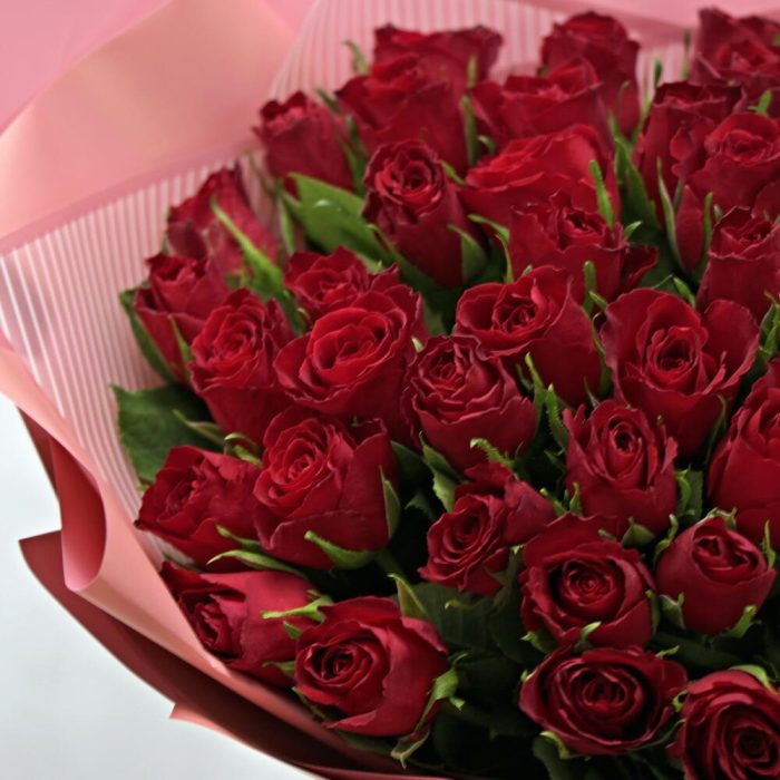 Букет из 51 красной розы 35-40 см (Кения) в стильной упаковке