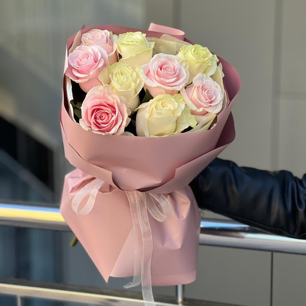 Букет из 9 белых и розовых роз