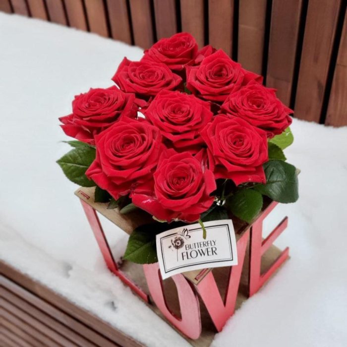 Роза – 9 шт.коробка с колбами – 1 шт.