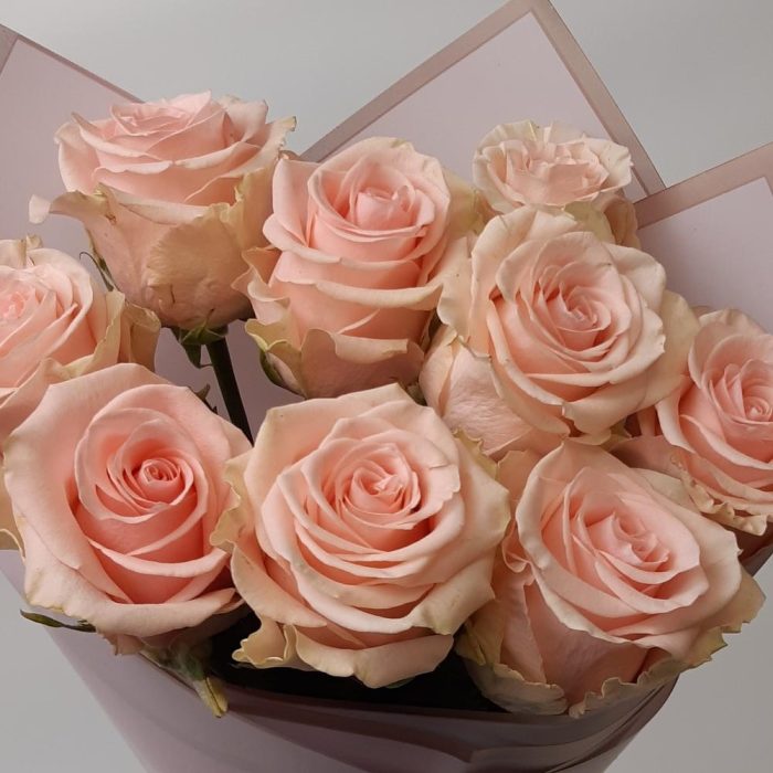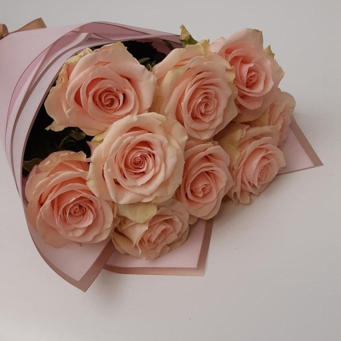 Букет из 9 розовых роз. Букет 387 ALMOND ROSES