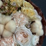 “Атлас☁️” – цветочная композиция с зефиром в деревянном ящике