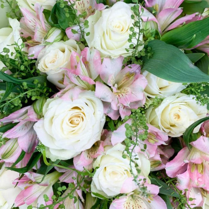 Букет из белой розы Кения и розовой альстромерии