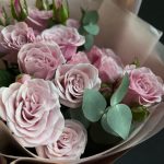 Букет из кустовой пионовидной розы, хамелациум и эвкалипт
