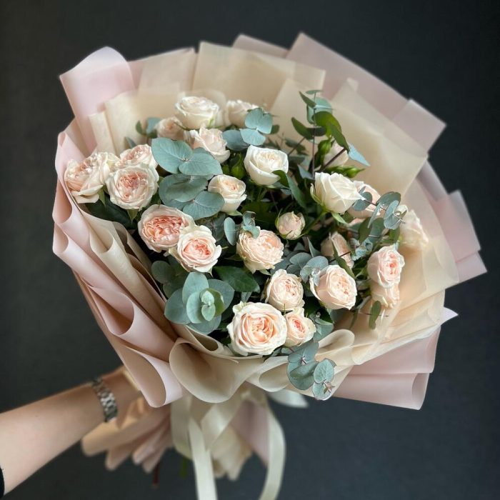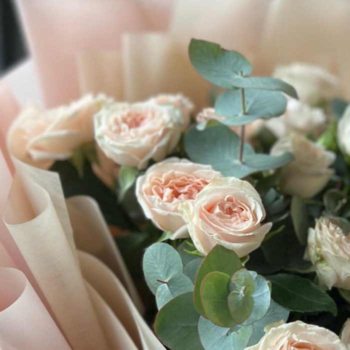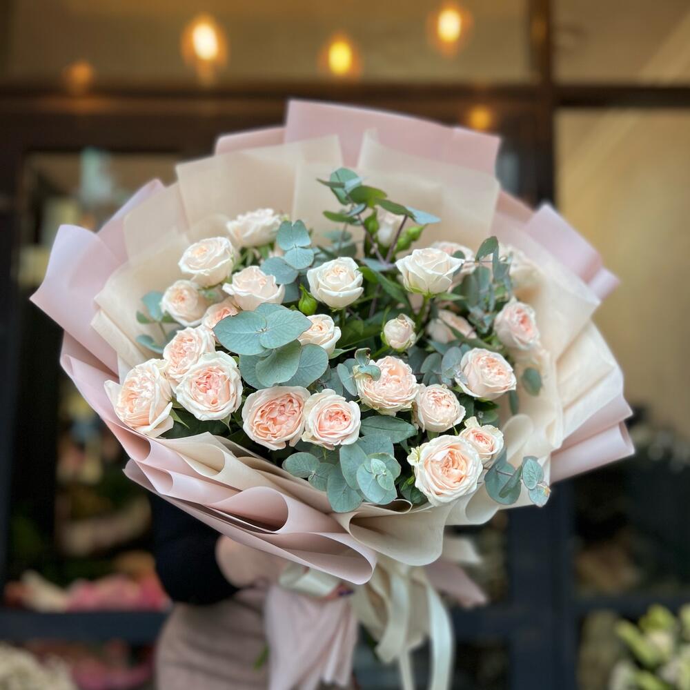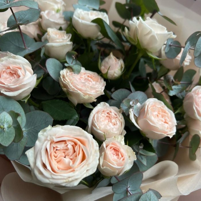 Букет из кустовой розы Павлова и эвкалипта