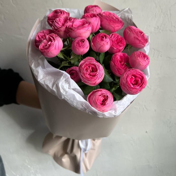 Упаковка дизайнерская – 1 шт.Кустовая роза пионовидная – 5 шт.