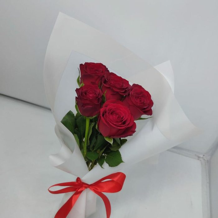 роза кения 40 см – 5 шт.Дизайнерская упаковка – 1 шт.