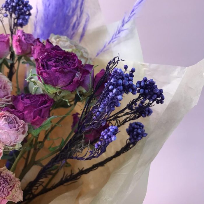 Ковыль – 2 шт.озотамнус стабилизированный – 2 шт.роза кустовая засушенная – 2 шт.роза засушенная – 3 шт.Оформление – 1 шт.