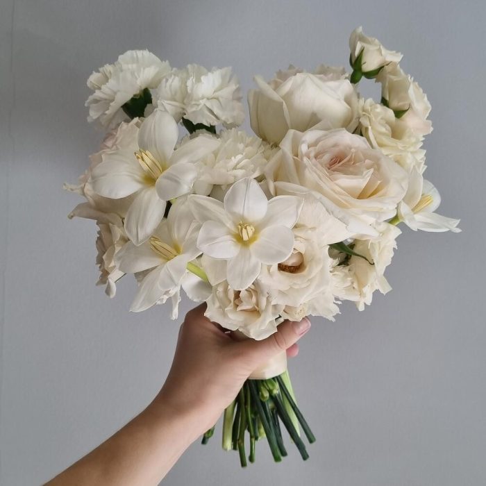 Тюльпан – 4 шт.Диантус – 6 шт.Роза кустовая – 3 шт.Пионовидная роза – 4 шт.ваза транспортировочная – 1 шт.сумка переноска – 1 шт.