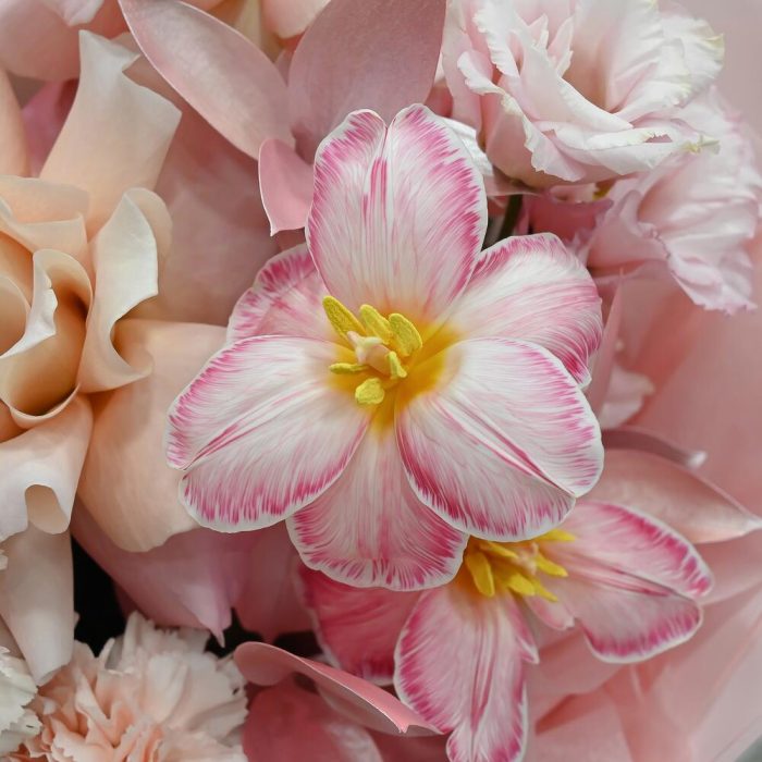 Букет с тюльпанами и французской розой