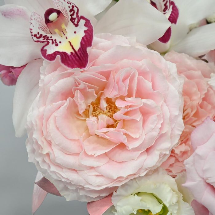 Букет в коробке с пион розой и орхидеей