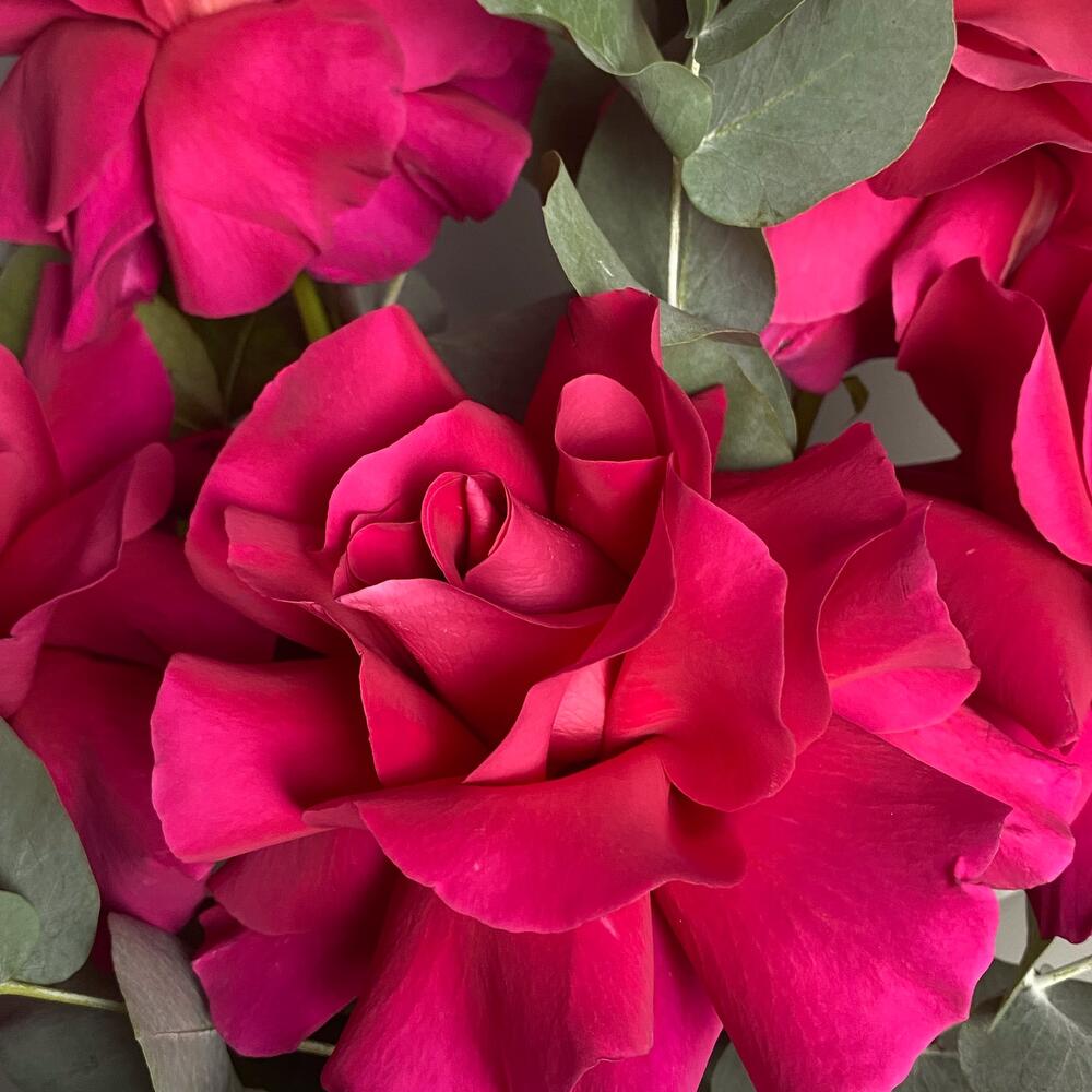 Яркие французские пионовидные розы. Прекрасный танец ароматных роз и эвкалипта для самых искушённых.