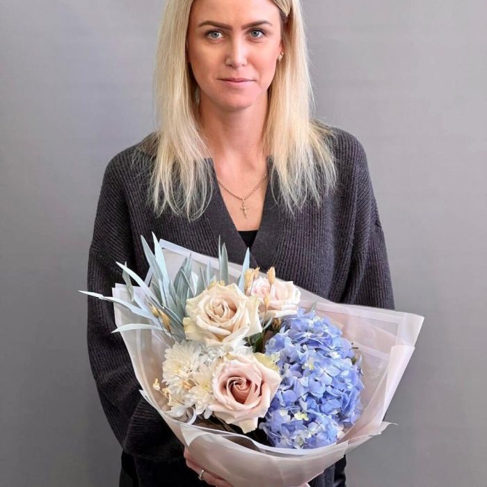 “Эвкалиптическая роскошь” гортензия и пионовидная кустовая роза